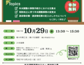 Facebook 菊川市商工会 新着NEWS 「静岡県最低賃金」改正のお知らせ ●2025年10月02日 【セミナーのご案内】年末調整事務セミナー開催 ●2025年09月30日 令和7年8月期景気動向調査について ●2025年09月29日 もっと見る >