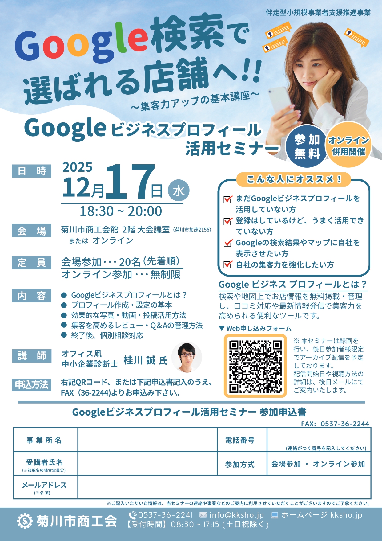 「Googleビジネスプロフィール活用セミナー」開催決定!